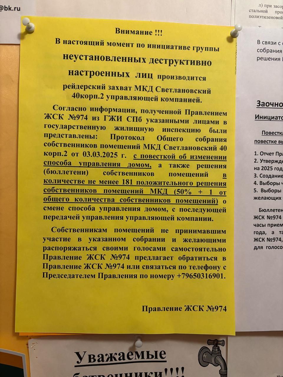 Обьявление от Правления ЖСК о том, что кто-то призывает жителей перевести дом
